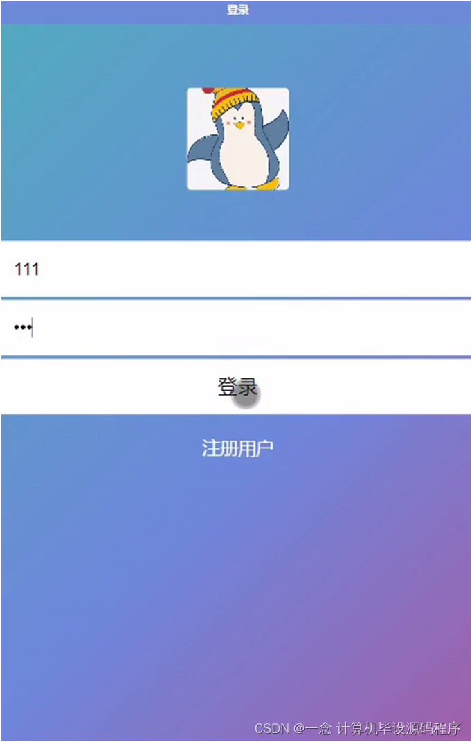 登录界面,首先双击打开微信小程序端系统,连上网络之后会显示出本系统的登录界面,这是进入小程序的第初始页面“登录”,能成功进入到该登录界面则代表小程序的开启是成功的,接下来就可以操作本系统所带有的其他所有的功能,如图5-9所示。