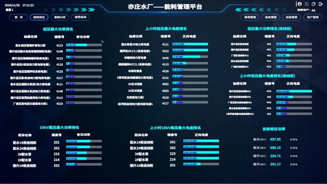 能耗排名模块通过科学计算,为优化设备运行提供依据。它采用特定公式计算单位能耗,直观展示不同设备能耗排名,帮助水厂提高运营效率、降低能耗成本。