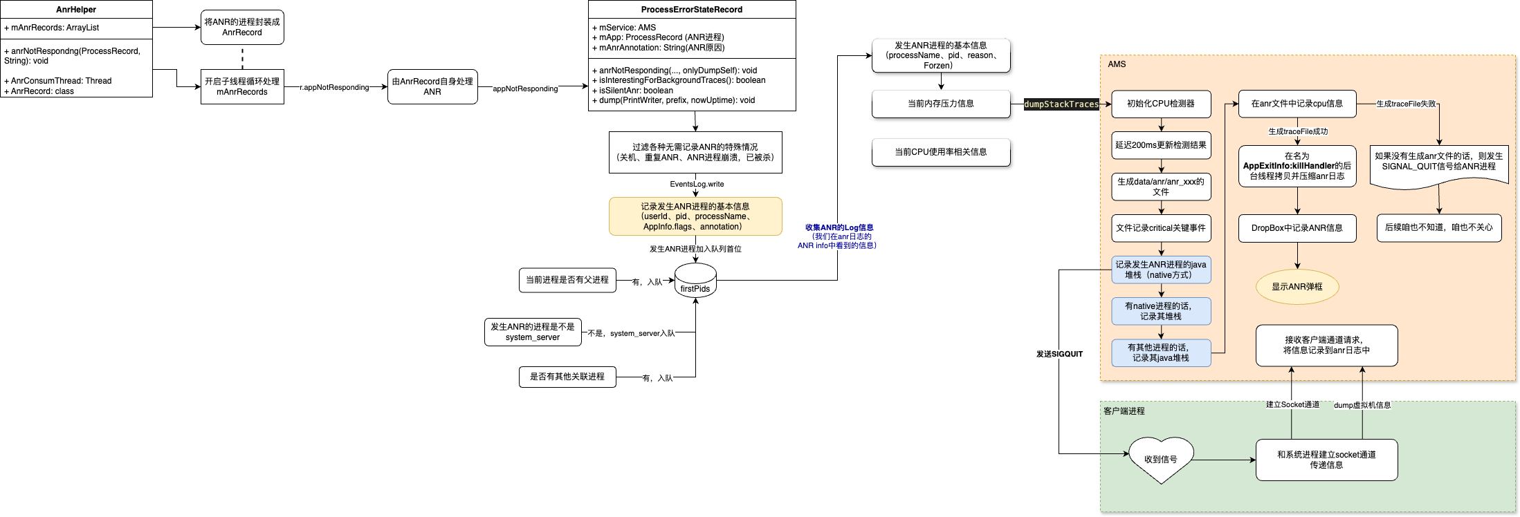 所以,了解ANR打扫战场的过程,一方面是为了了解系统是如何记录这些信息?(是否有三方应用能插一脚的地方🐶);其次是探索记录了哪些信息?我们分析时可以从哪些角度排查?