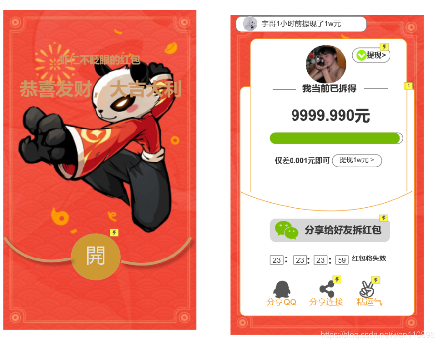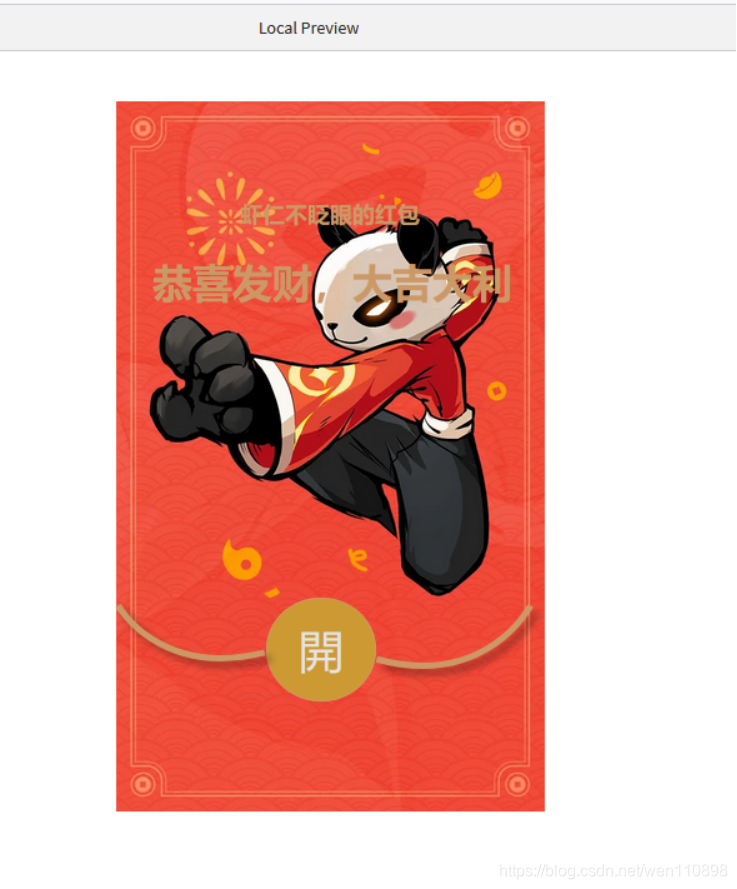 点击“开”使用了交互动作,把封面隐藏,红包显示出来。