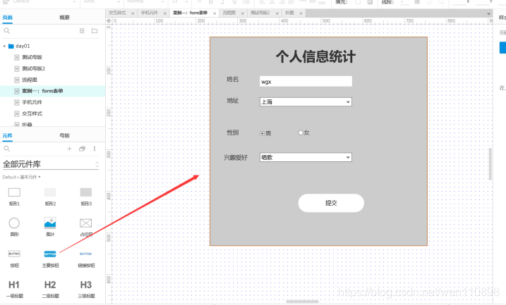 将你需要的元件通过鼠标拖拽来到我们的设计区域
