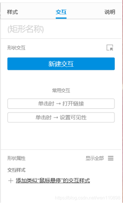 1、交互可以通过选中元件在右边弹出的交互框设置