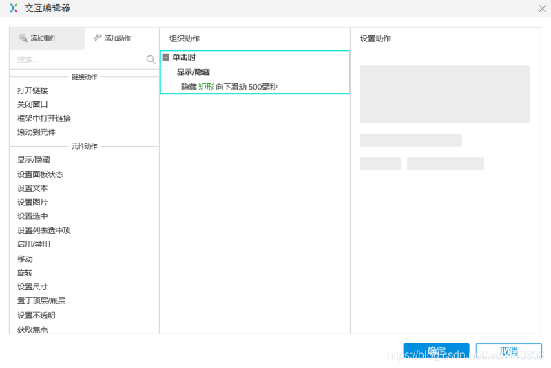 当然我们也可以通过交互编辑器设置我们的交互样式,双击我们的事件既可进入。