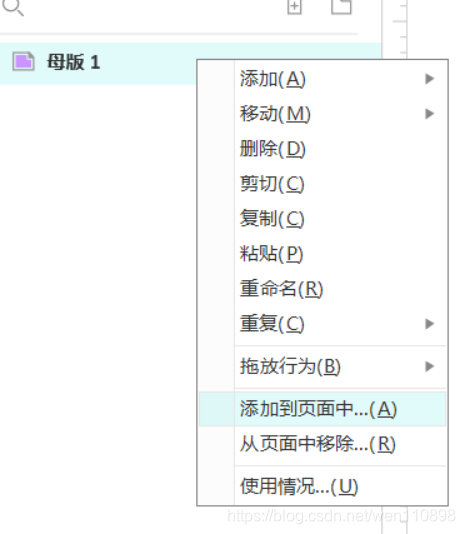 这时候我们将母版中的东西复制到子模版(page1)中,鼠标右键选择 “添加到页面中”