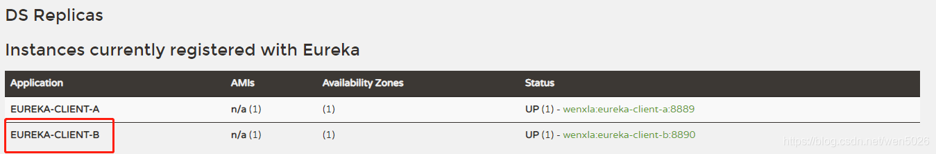 在浏览器中刷新http://localhost:8888/页面,此时出现被新注册的服务EUREKA-CLIENT-B