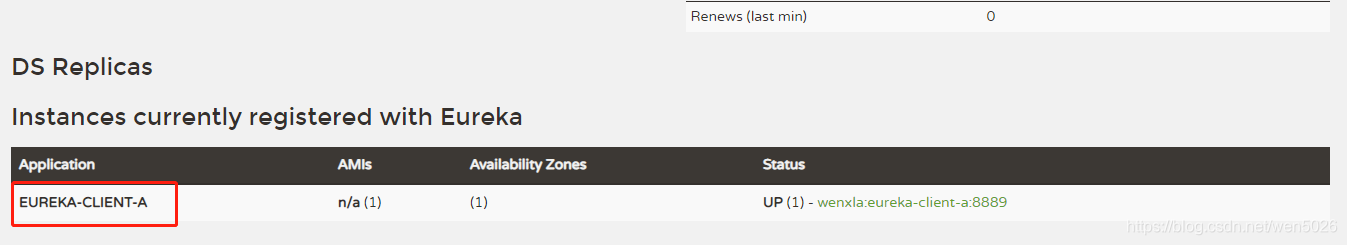 在浏览器中刷新http://localhost:8888/页面,此时出现被注册的服务EUREKA-CLIENT-A