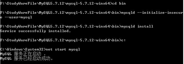 (2)Mysqld install #回车会出现安装成功提示;出现Service sucessfully installed表示mysql服务已经安装