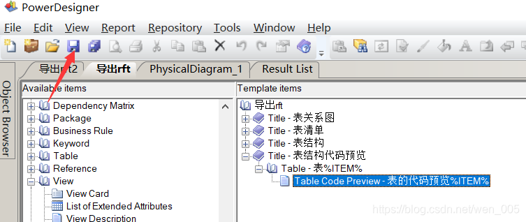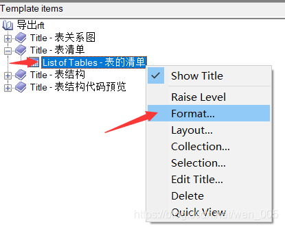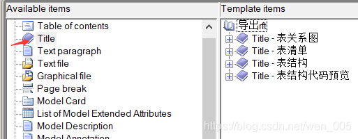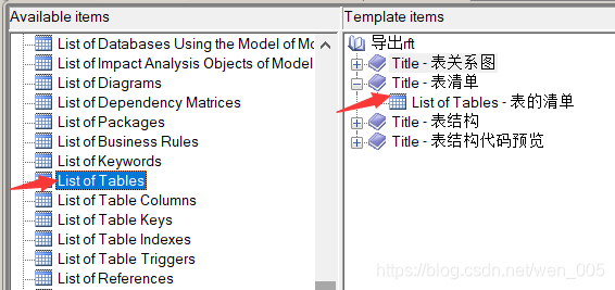 在模板左侧找到List of Tables,然后拖动到右侧的表清单中。