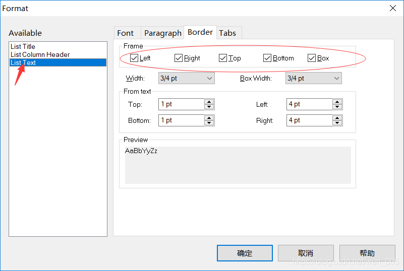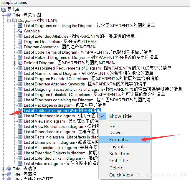 设置List of Tables in diagram-表在图中的清单格式,添加表格边框。