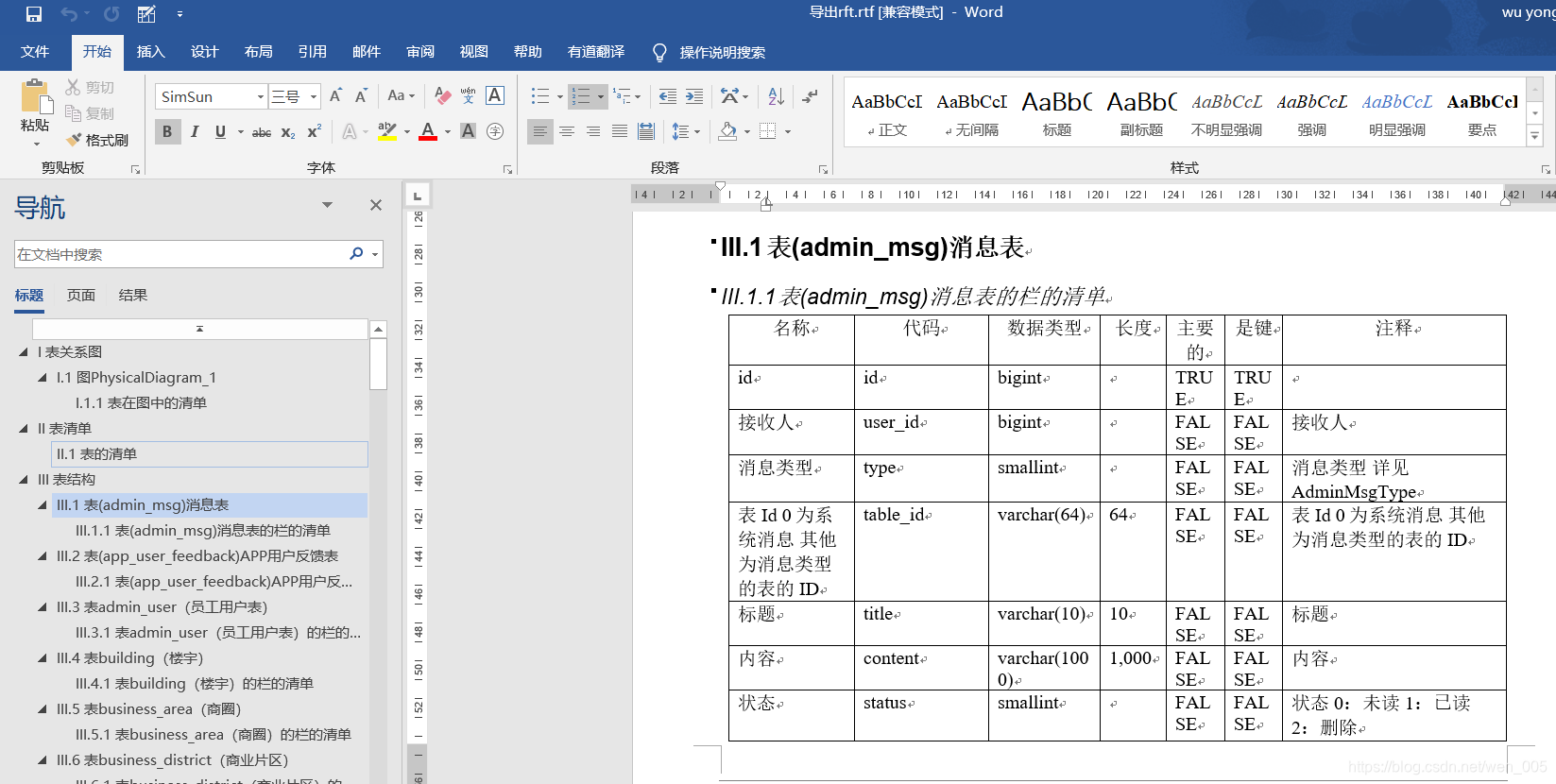 4、设置表结构属性,设置后可将所有的表,以及表字段等信息用表格的方式导出到word中。