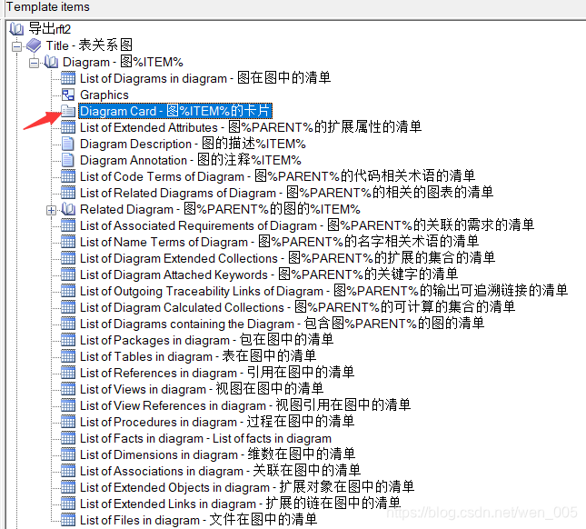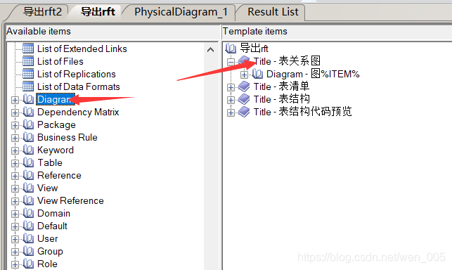 在模板左侧中找到Diagram,然后将它拖到右侧的表关系图中,如下图: