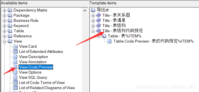 在模板左侧找到“View——>View Code Preview”,然后拖动到右边的表结构中。