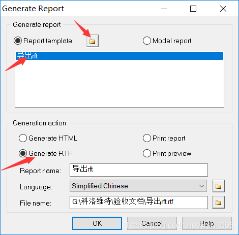 选择刚才自己创建的模板目录,然后导出模板在列表中显示,选择模板,然后选择“Generate RTF”,点击ok进行导出。