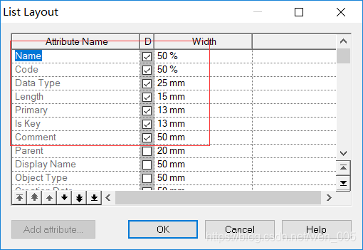 设置导出的属性打勾,以及单元格宽度,如下图: