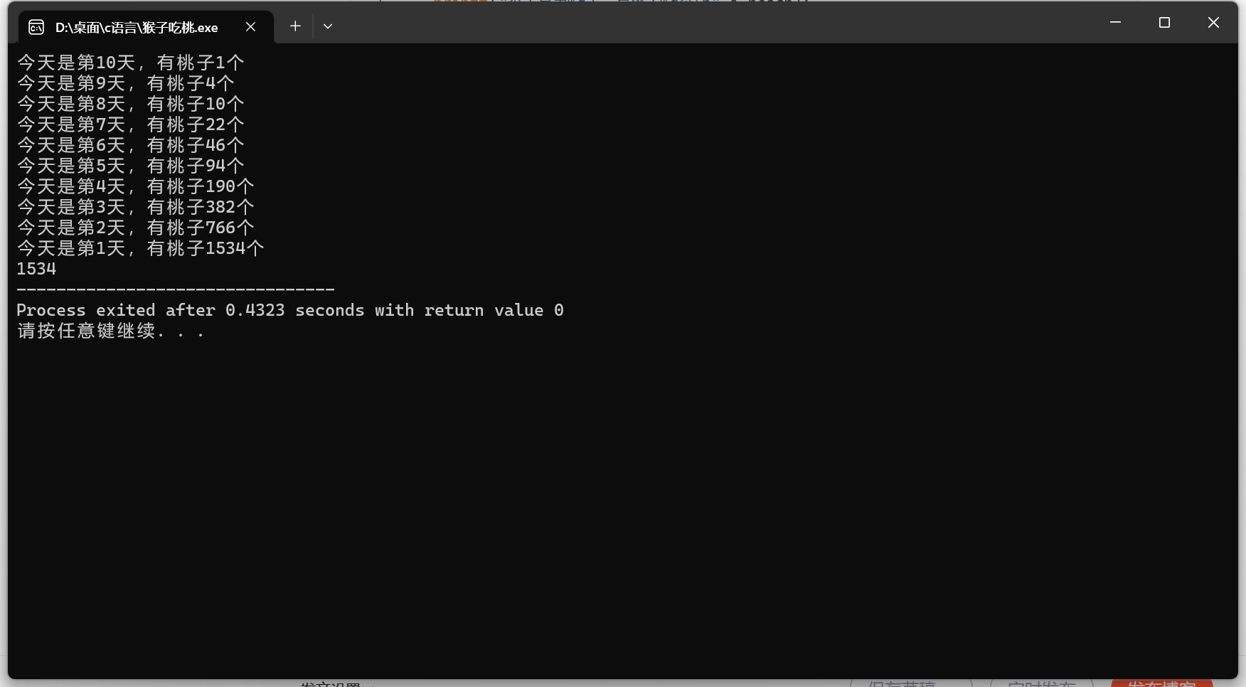 printf("今天是第%d天,有桃子%d个\n",i,peach);