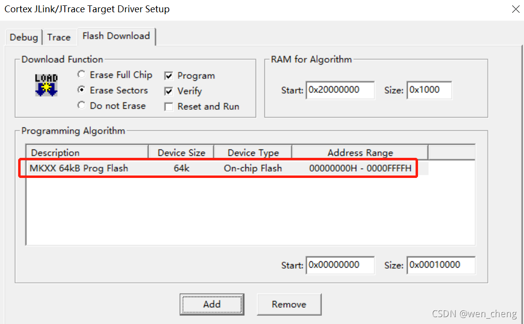 1)刚开始我以为是device没有选对,对应的下载算法没有适配造成的,所以我在target里面重新选择了MKV30F64VFM10,对应的算法也从512K的flash算法更正为64K的flash算法