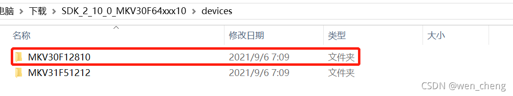 2)没办法了,我就在NXP 的MCUXpresso SDK Builder里面尝试生成MKV30F64VFM10的SDK包,目录是这样的: