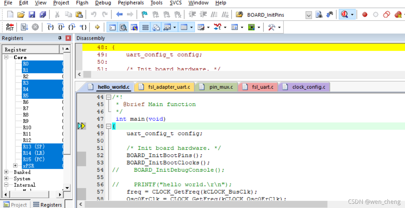 4)于是怀疑是不是KV31的driver,分散加载,启动code不适配KV30(小声嘀咕,确实是不匹配的,甚至API都有区别),开始了替代大法,果然是有效的,可以debug了。