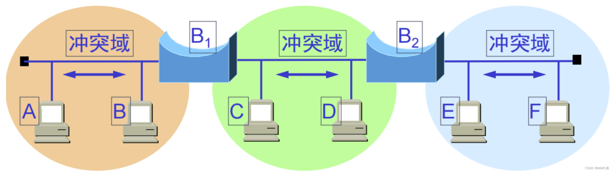 网桥:解决冲突域,一个接口就是一个冲突域,可以识别Mac地址,设备查看Mac地址依照Mac地址表进行数据转发