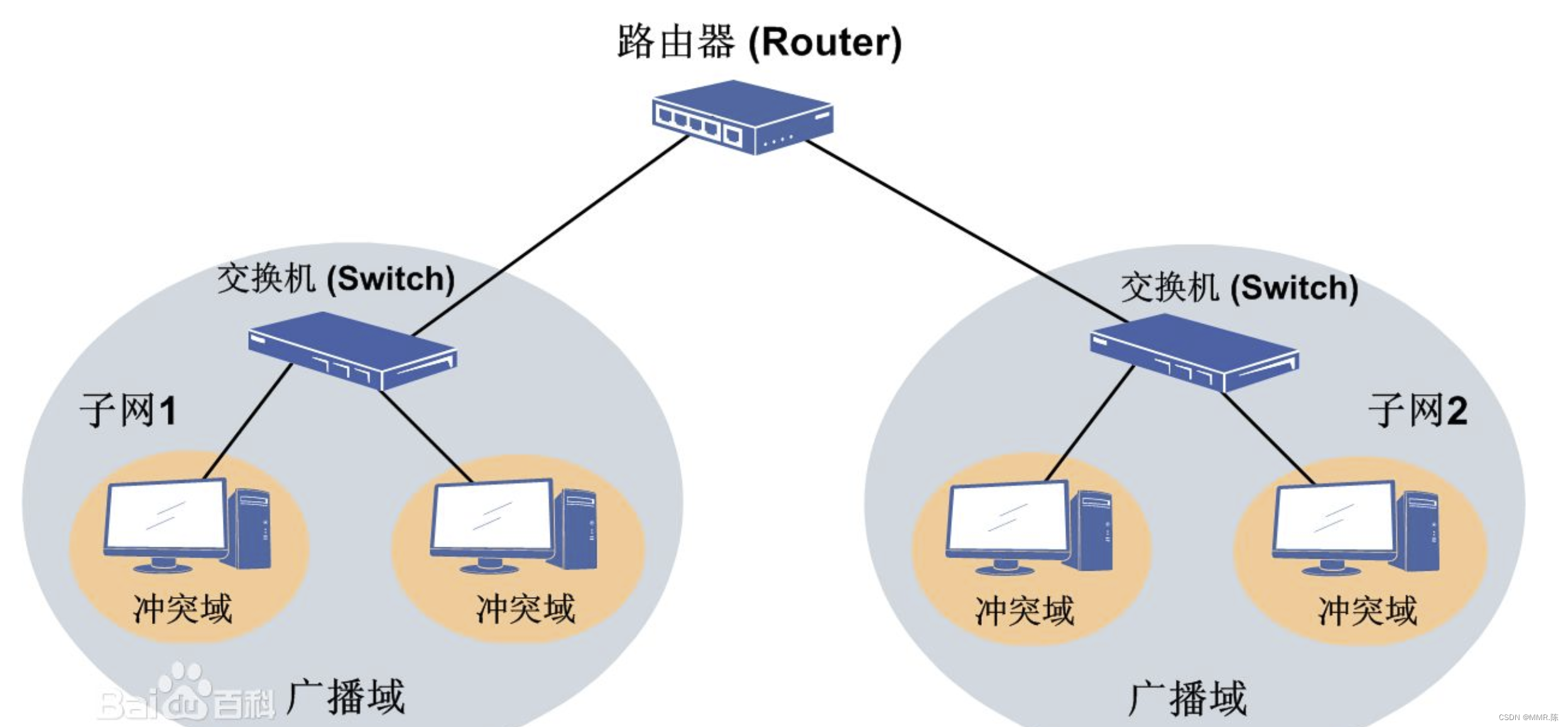 - 路由器:具有隔离广播域的功能,可以识别三层网络层地址