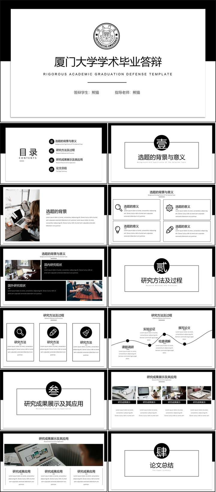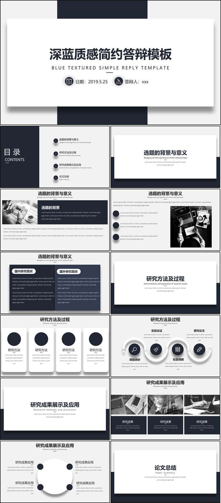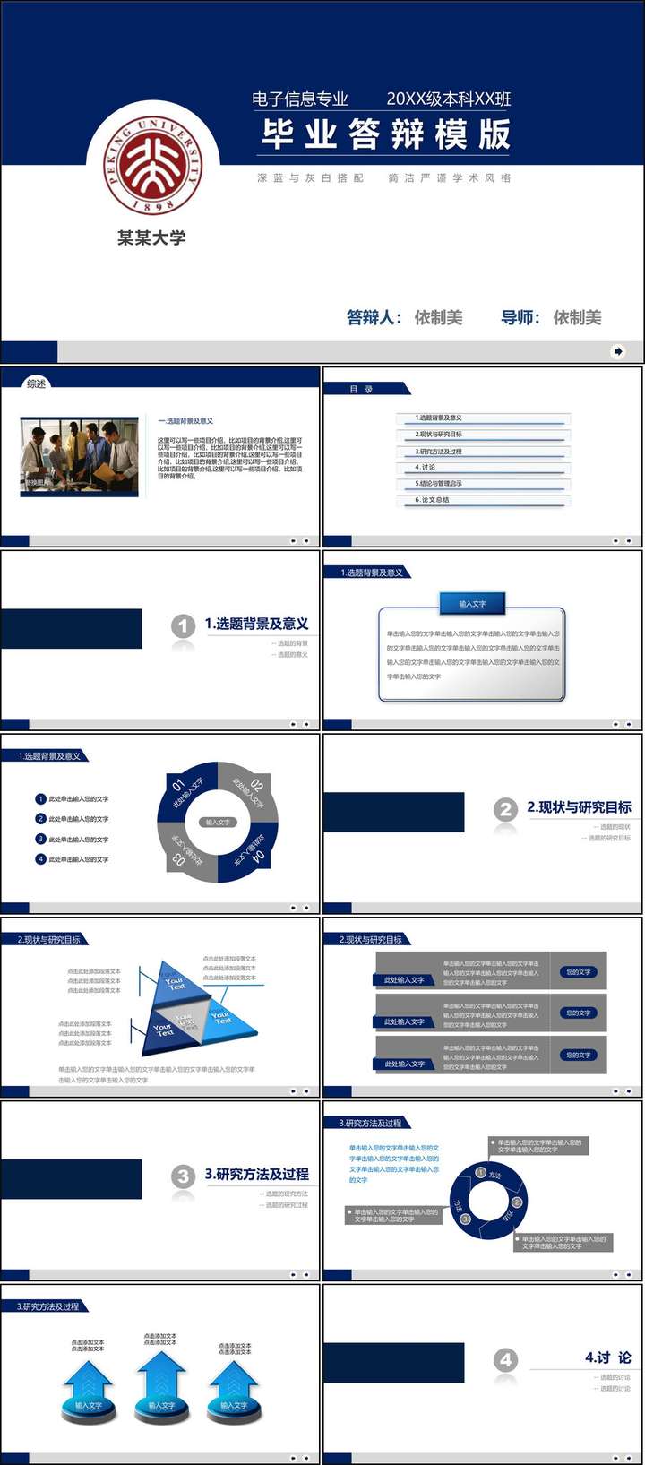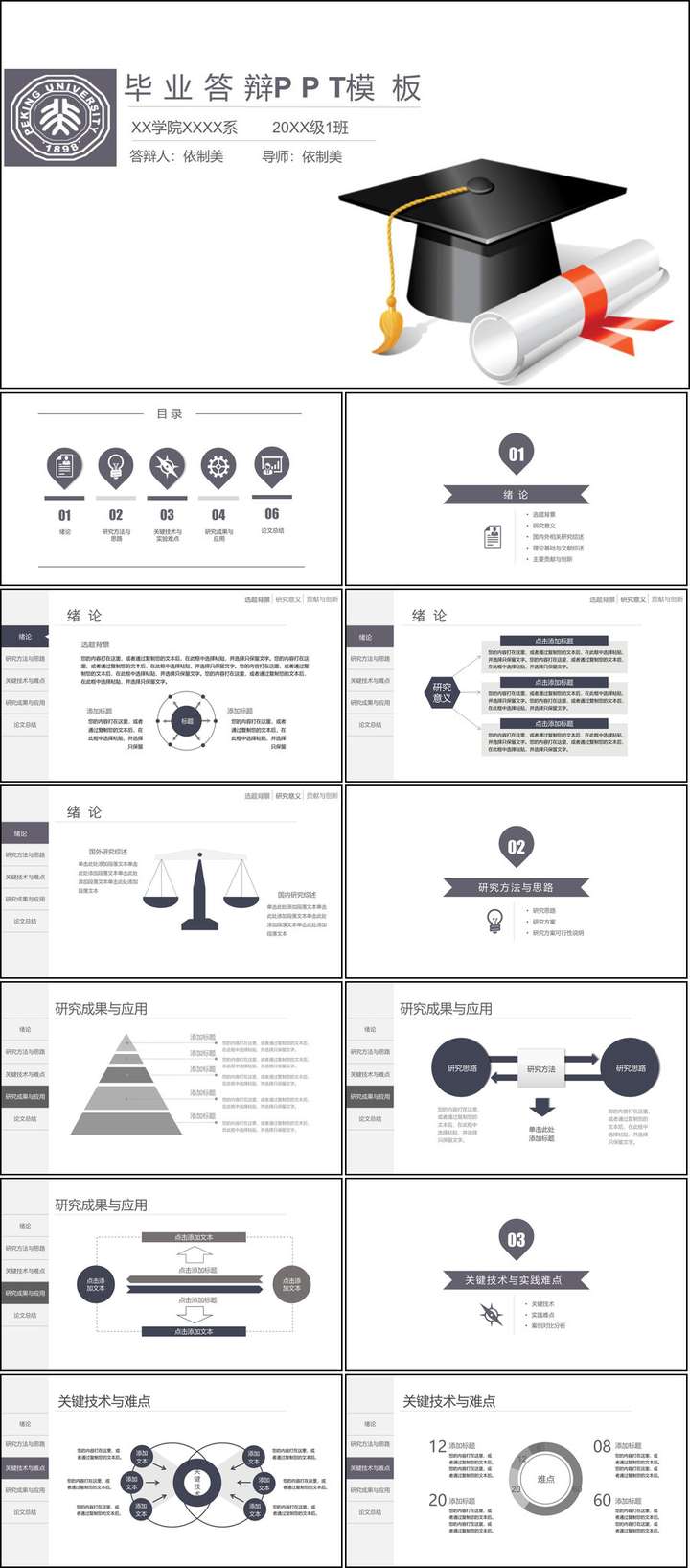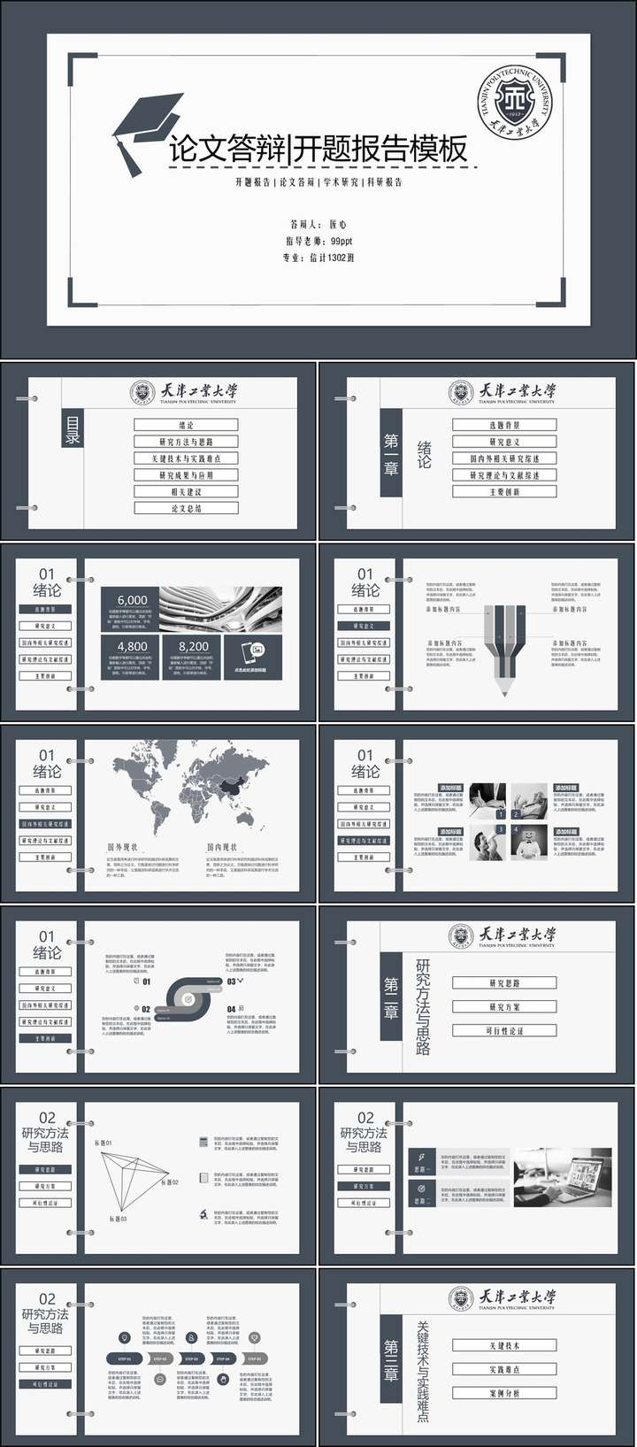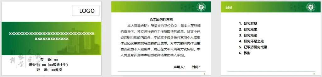 要明确,毕业答辩PPT本质上属于一种学术答辩PPT,所以最核心的不应该关注表现形式,而要关注是否能够清晰呈现出作者在课题中的科研逻辑思维。