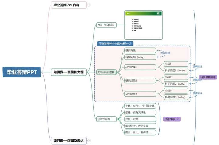 我们在做毕业答辩PPT时,如何体现科研逻辑思维呢,这里给两个关键词,目录和大纲。