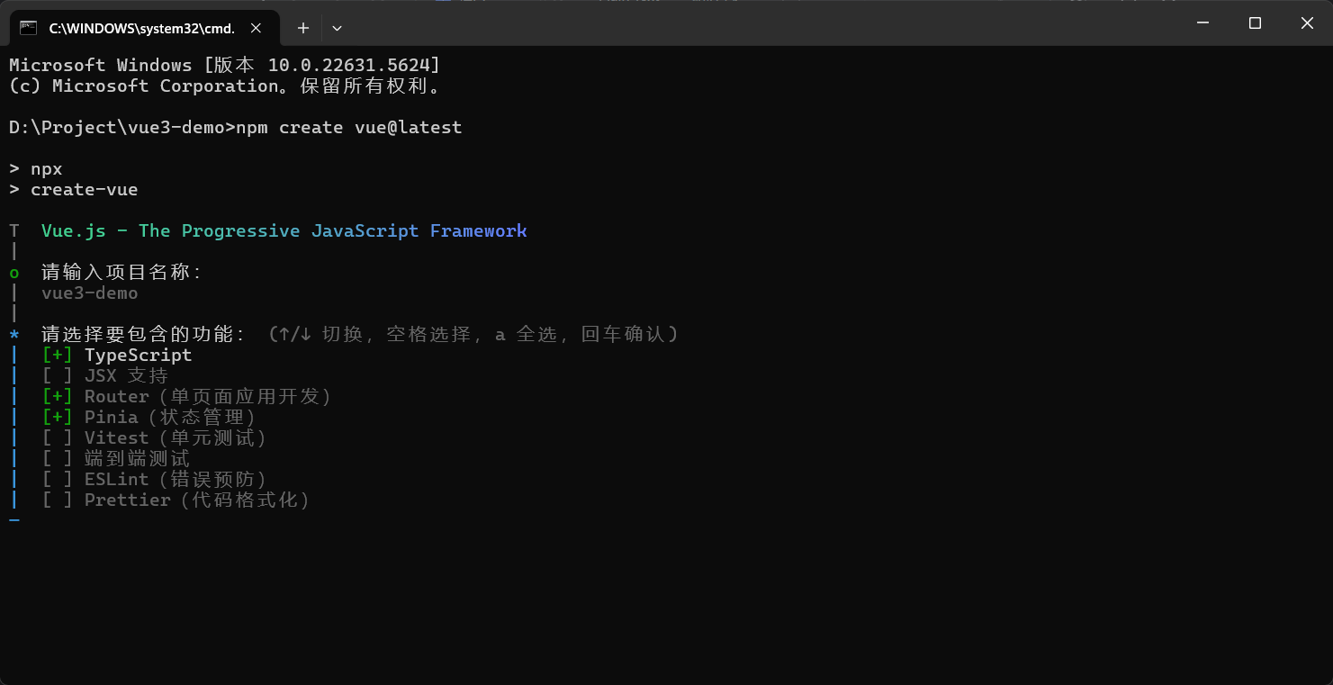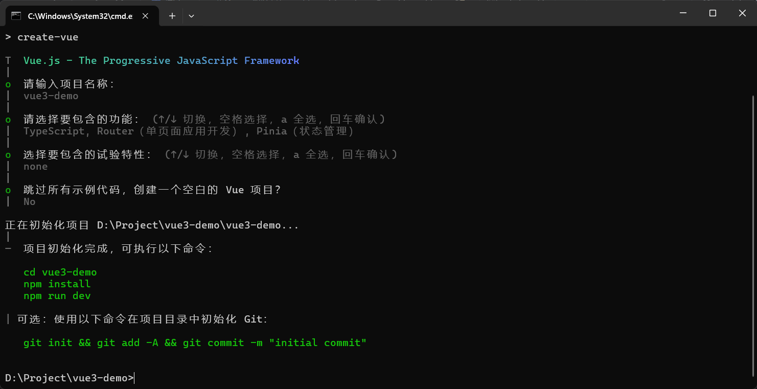 # 执行项目初始化(下载Vue3项目运行需要的各种包),等待执行完成