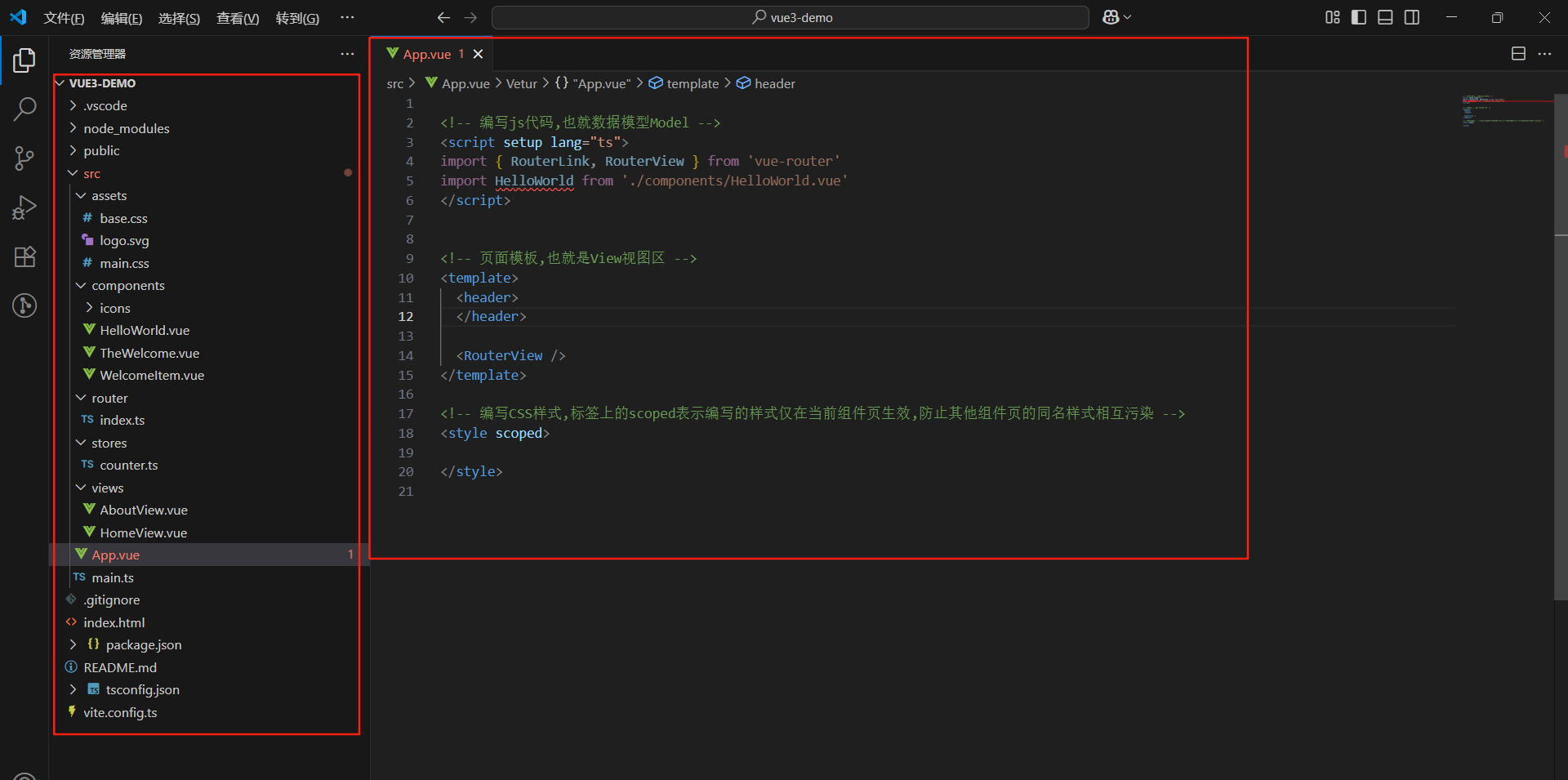 我们首先打开App.vue页面,把相关内容清理成如图中所示。