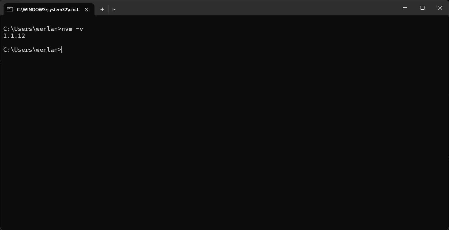 安装成功后,打开windows的cmd窗口运行nvm -v,确保安装成功
