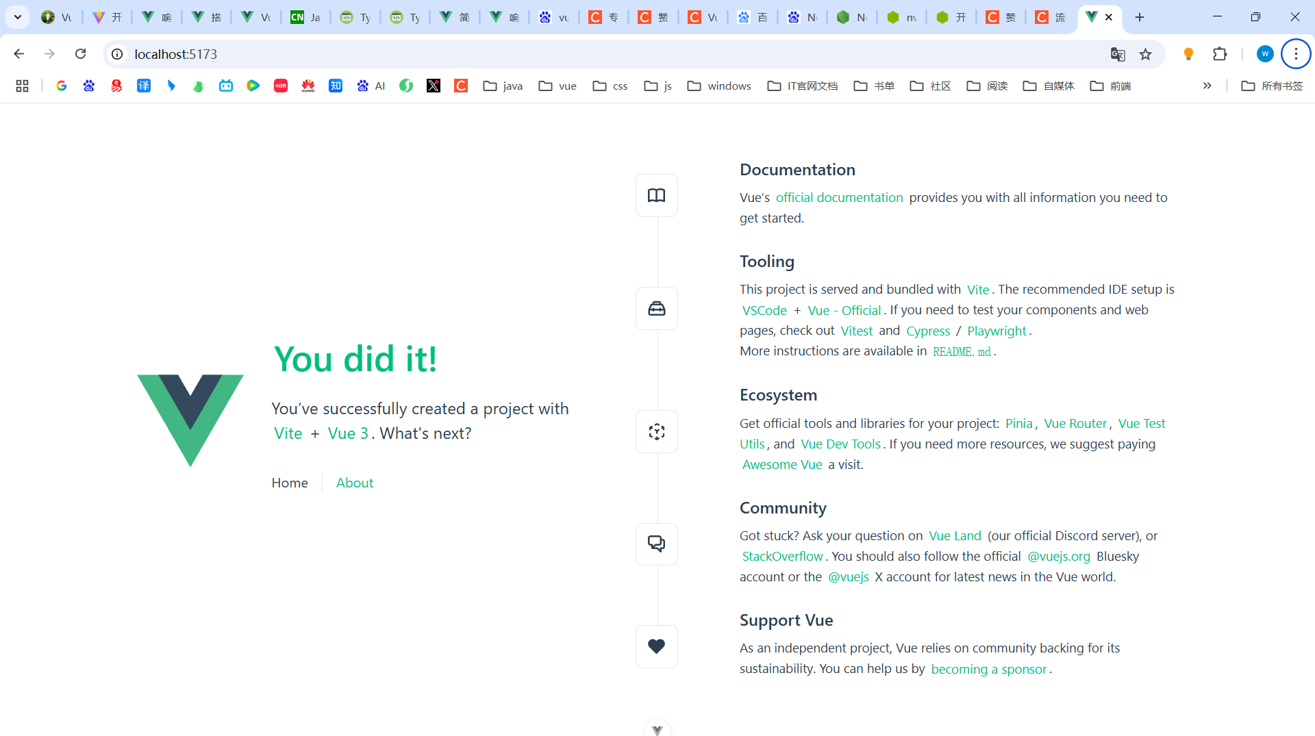 将对应的链接通过浏览器打开,如果打开成功,恭喜你,已经启动成功了vue3的项目。