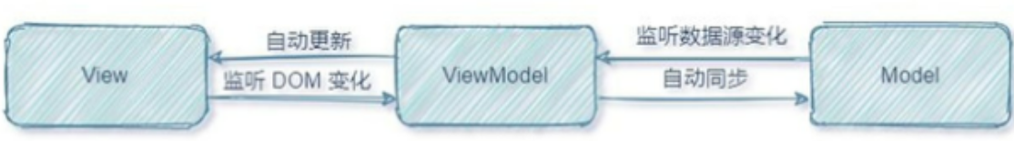 - VM监听Model数据变化同步更新至View视图DOM节点。