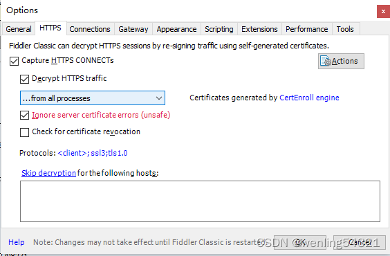 默认状态下,Fiddler只能监听HTTP请求,想要抓取HTTPS请求包,需要进行设置,设置路径:Tool->Options->HTTPS