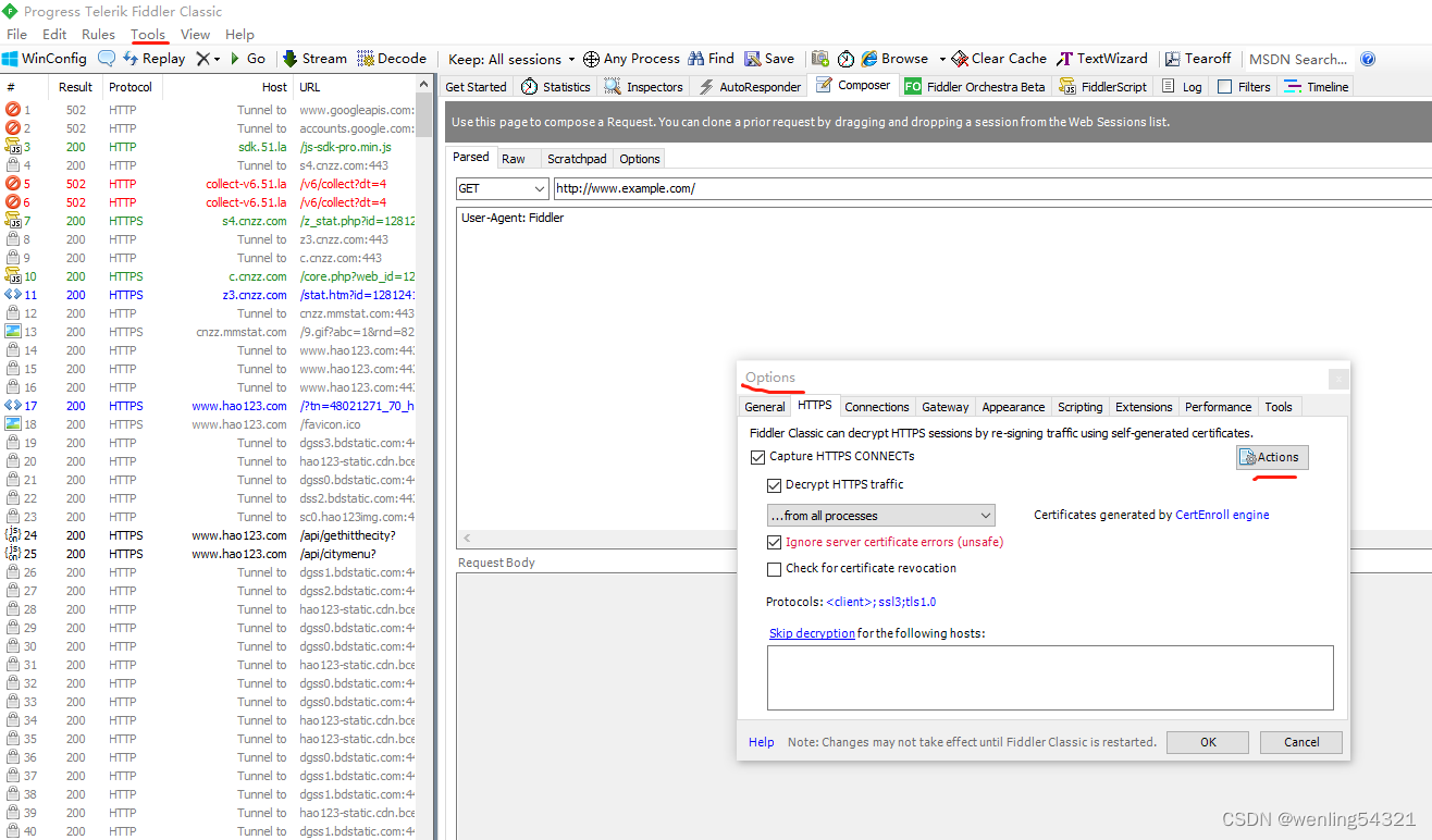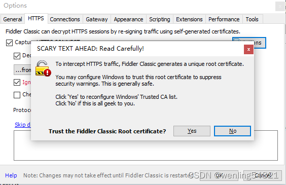 文章介绍了如何下载并安装Fiddler经典版,以及如何配置它来监听和抓取HTTPS请求。用户需要选择经典版下载,安装后通过Tools>Options>HTTPS设置信任根证书,并在Connections页面启用相关选项。完成这些步骤后,Fiddler即可用于HTTPS流量的调试和故障排查。
