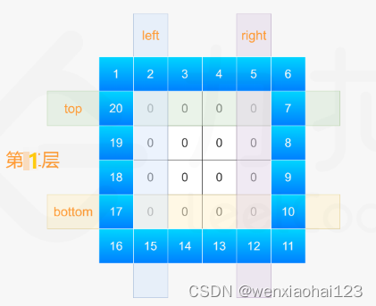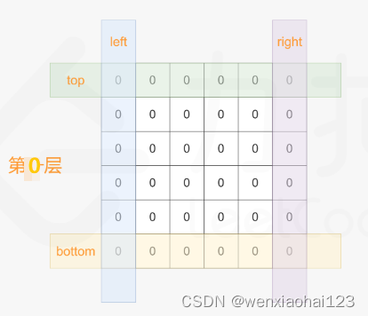 3)每进入下一层时,上下左右边界要相应的向里进1
