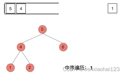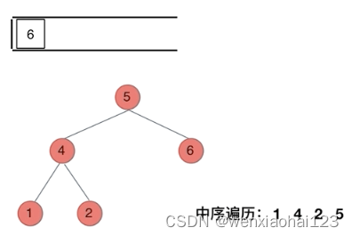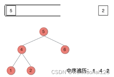 我们以中序遍历为例,在2)中提到说使用栈的话,无法同时解决访问节点(遍历节点)和处理节点(将元素放进结果集)不一致的情况。