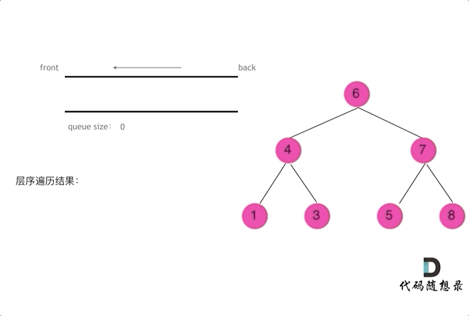 使用队列实现二叉树广度优先遍历,动画如下: