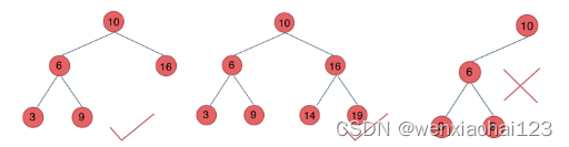 - 若它的右子树不空,则右子树上所有结点的值均大于它的根结点的值;