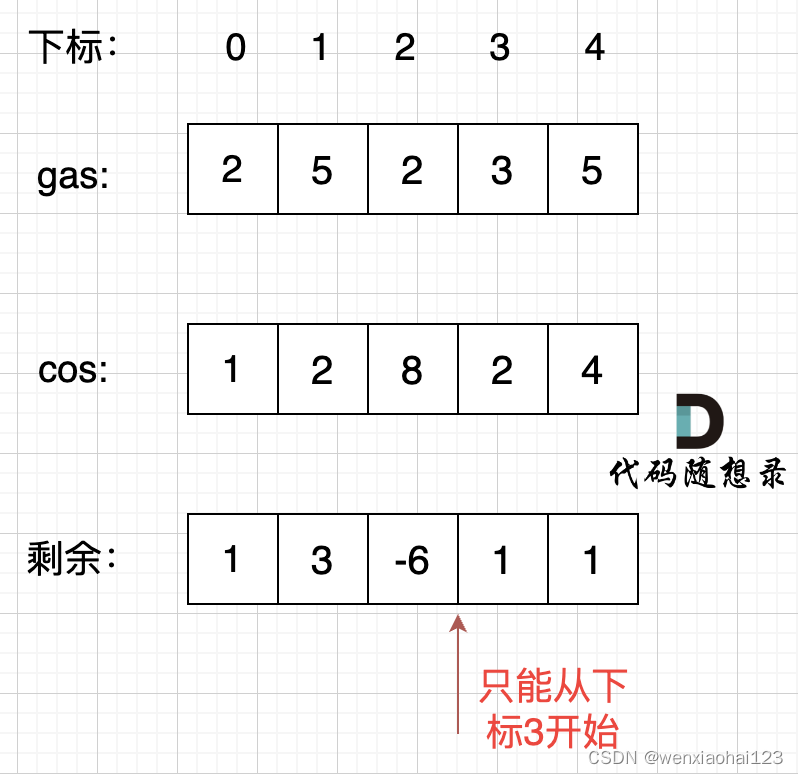 虽然,逻辑上我们应该先判断总加油量与总消耗量,符合要求再去比较,不过这里sum函数也需要遍历一遍历数组,所以在代码中,我们可以将计算总消耗与总加油量放到一个for循环中