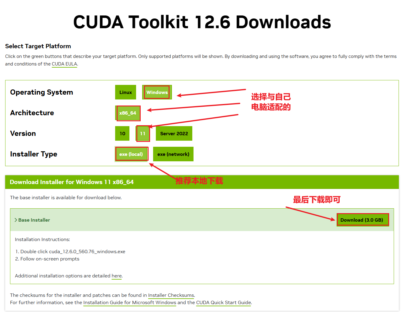 这里我选择12.6,我常用python是3.9(这里要去确认一下cuda和pytorch版本有关联,pytorch又和python有关联)