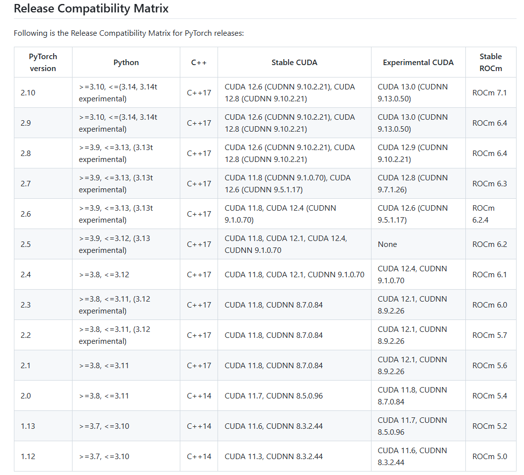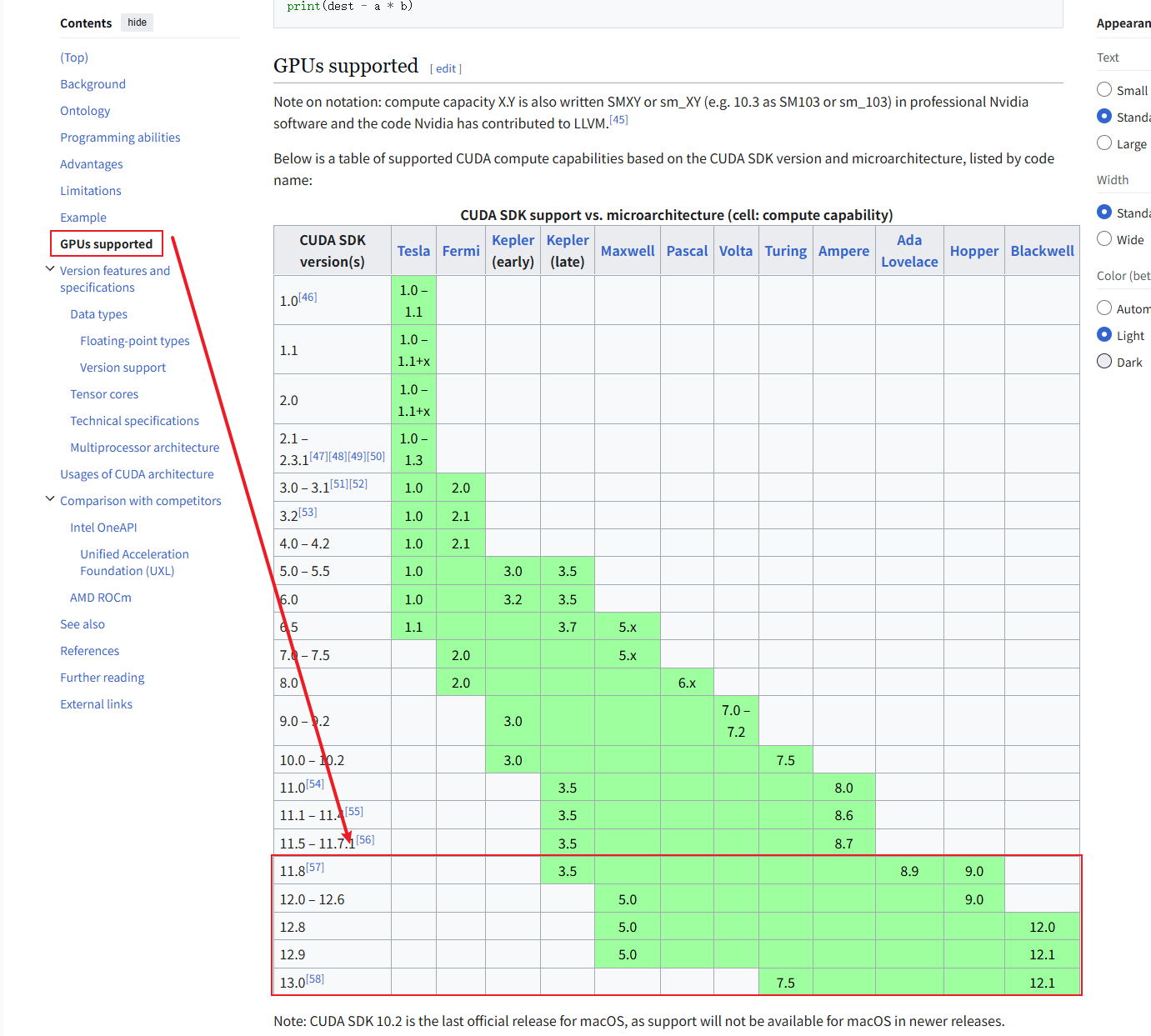 在这基础上往上滑会看到算力对应能装的cuda版本(我的是11.8,12.0-12.6,12.8,12.9,13.0)