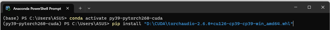 pip install "D:\CUDA\torchaudio-2.6.0+cu126-cp39-cp39-win_amd64.whl"