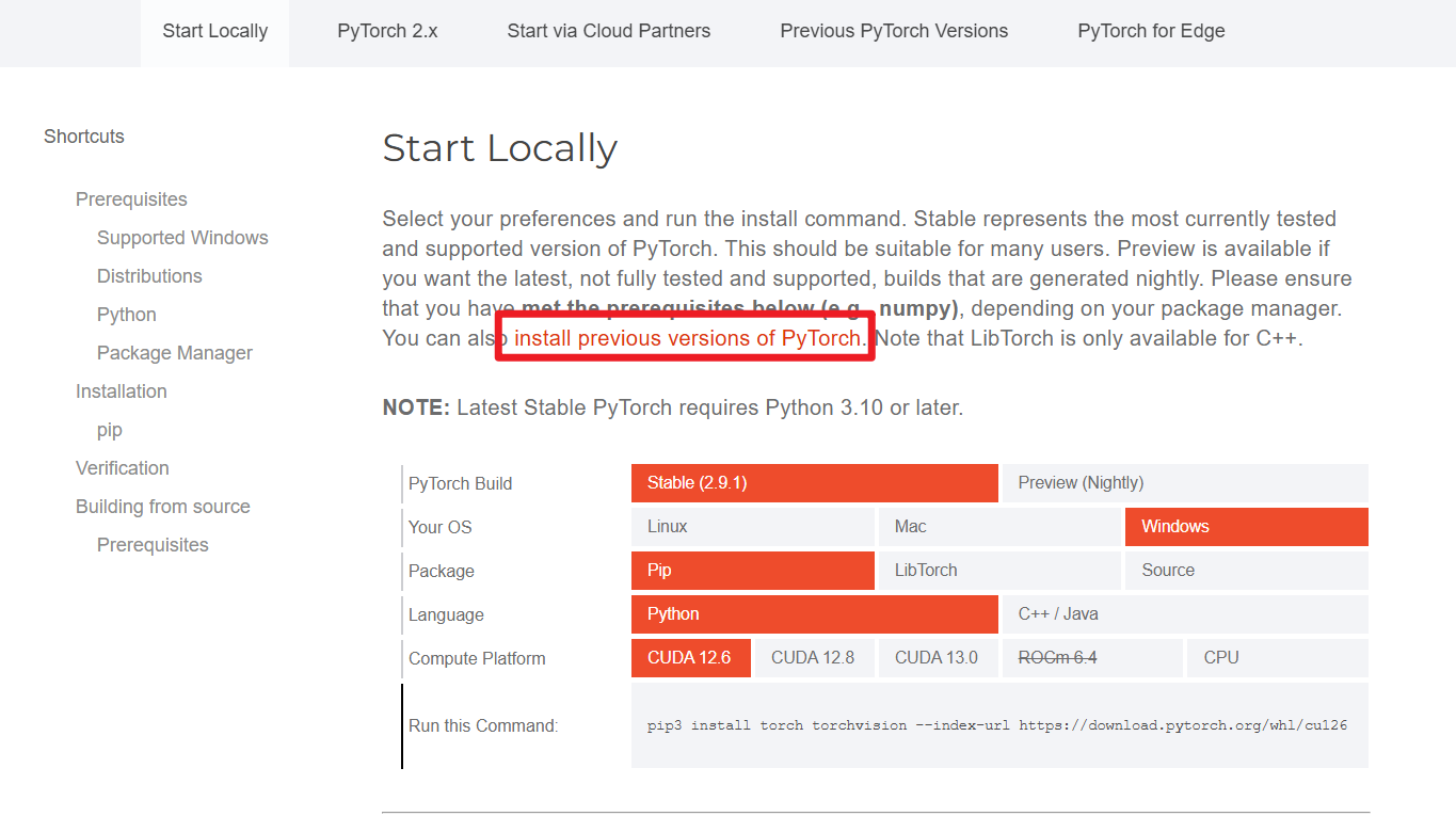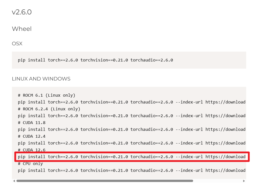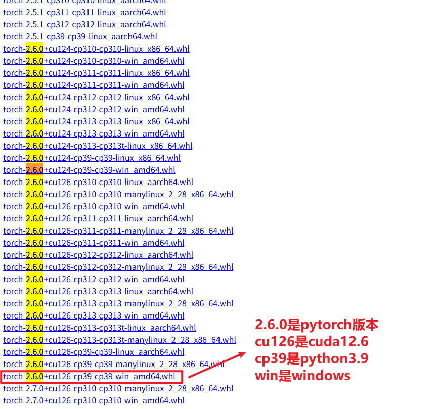 选择合适自己的版本(我的cuda是12.6,我想安装pytorch2.6.0版本)