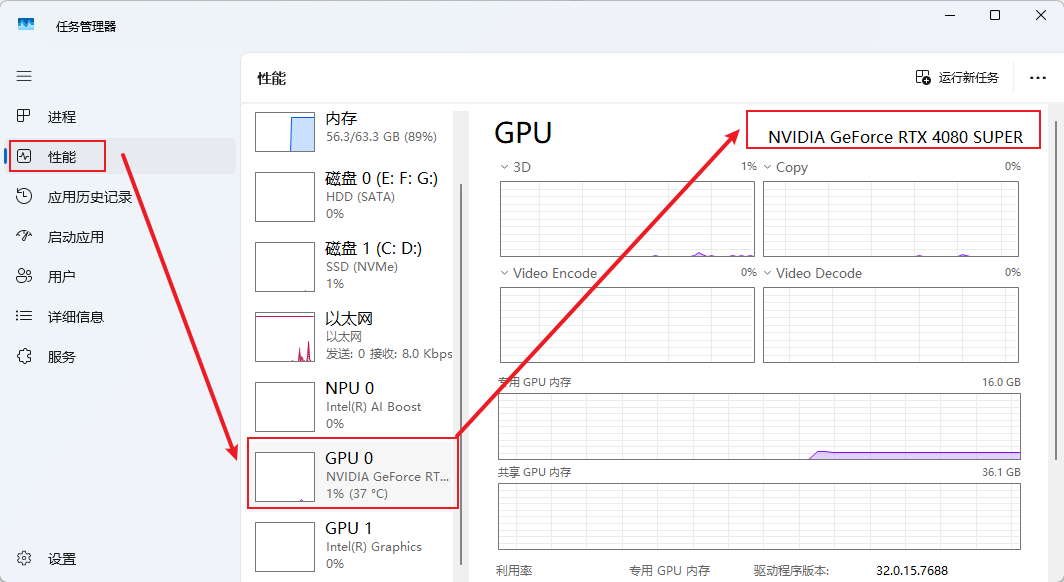 有多种方案,随便列几个。(我的是NVIDIA GeForce RTX 4080 SUPER)