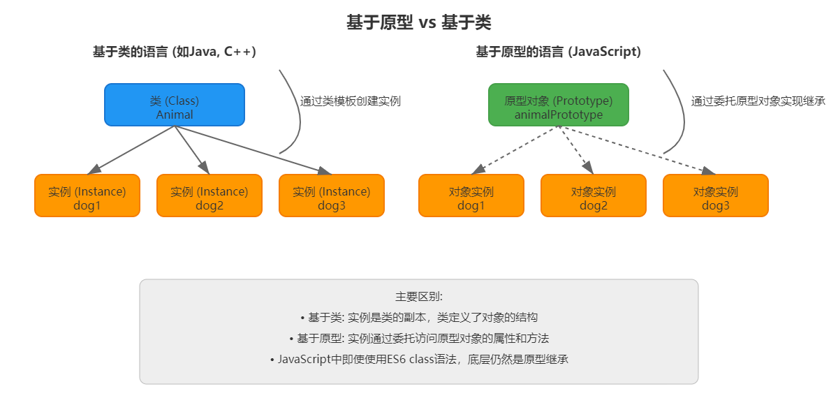 JavaScript的原型继承模型与传统的基于类的继承模型有很大不同,理解这种差异对于掌握JavaScript至关重要。