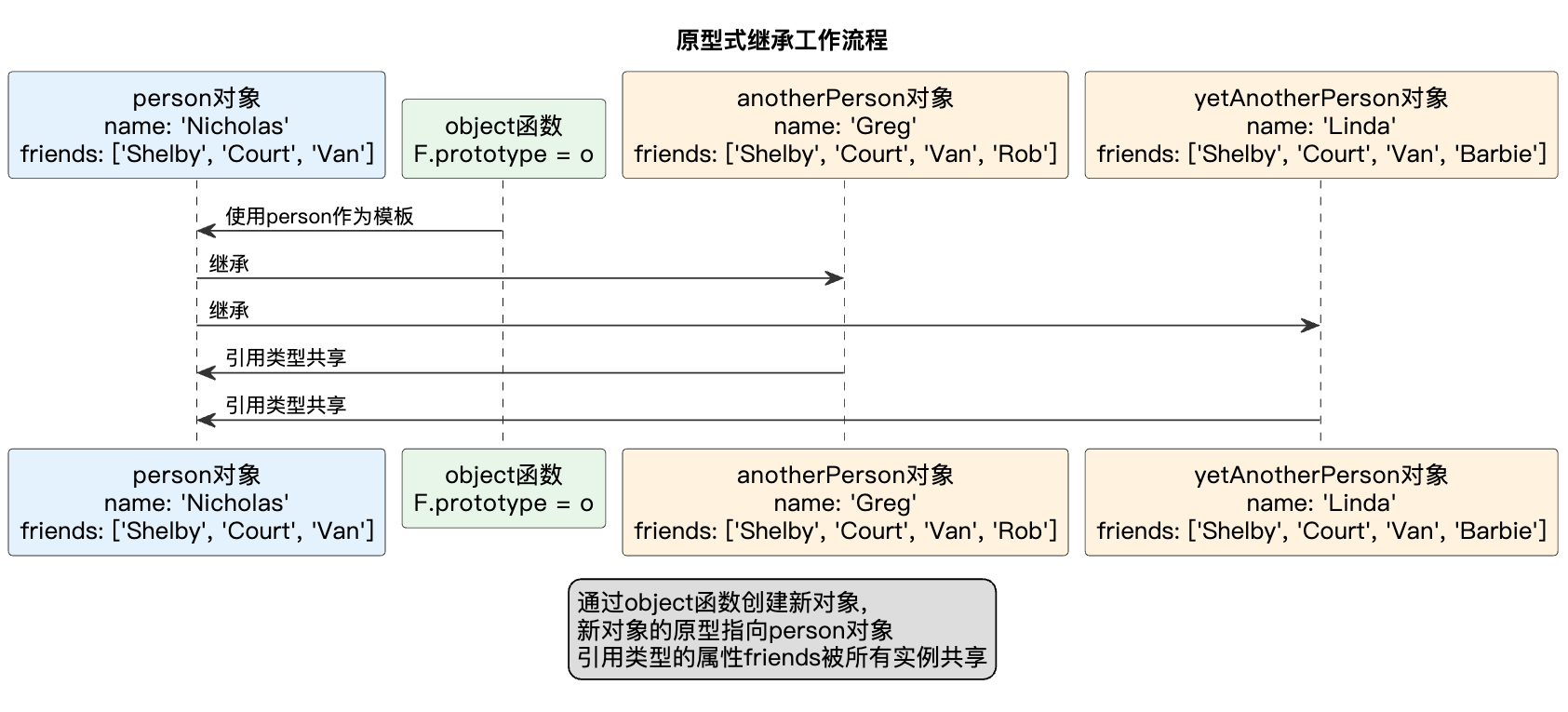 - 原型式继承:适用于基于已有对象创建新对象的场景