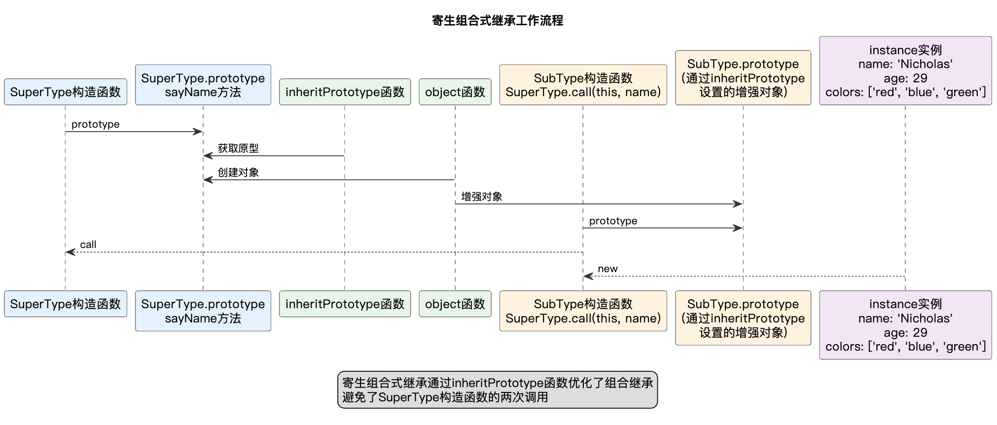 寄生组合式继承是引用类型最理想的继承范式,它结合了组合继承和寄生式继承的优点。