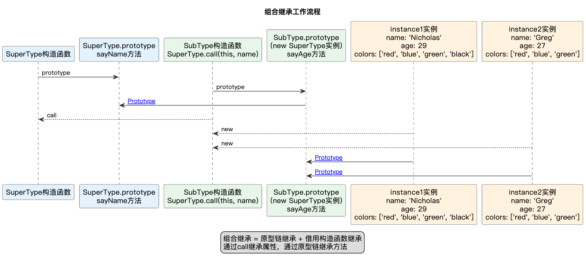 组合继承也叫伪经典继承,它结合了原型链继承和借用构造函数继承的优点。
