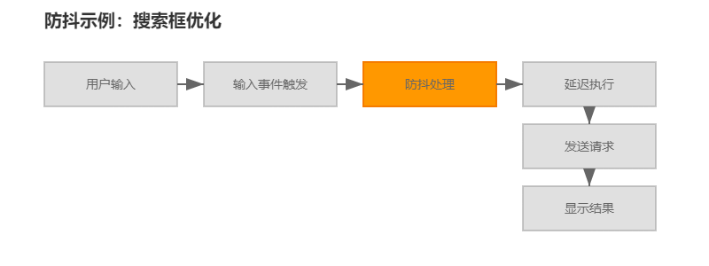 假设我们有一个搜索框,用户输入内容后需要向服务器发送请求获取搜索结果。我们可以使用防抖来优化这个过程: