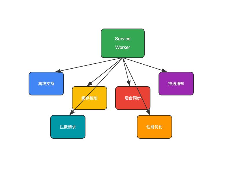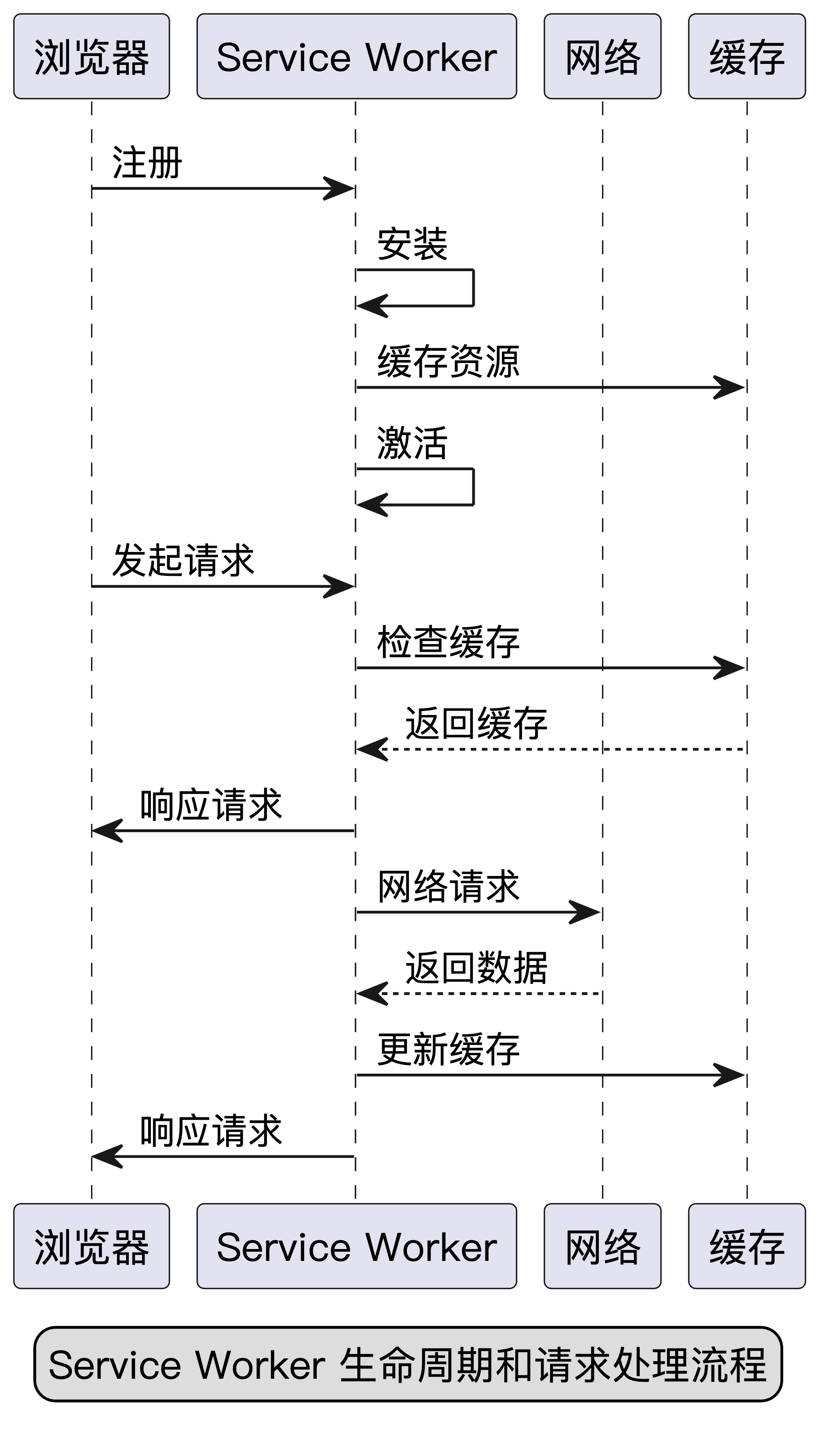 Cache API 是 Service Worker 的核心组件之一,用于存储和检索网络请求: