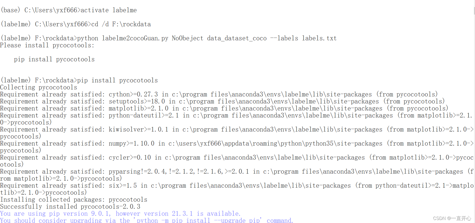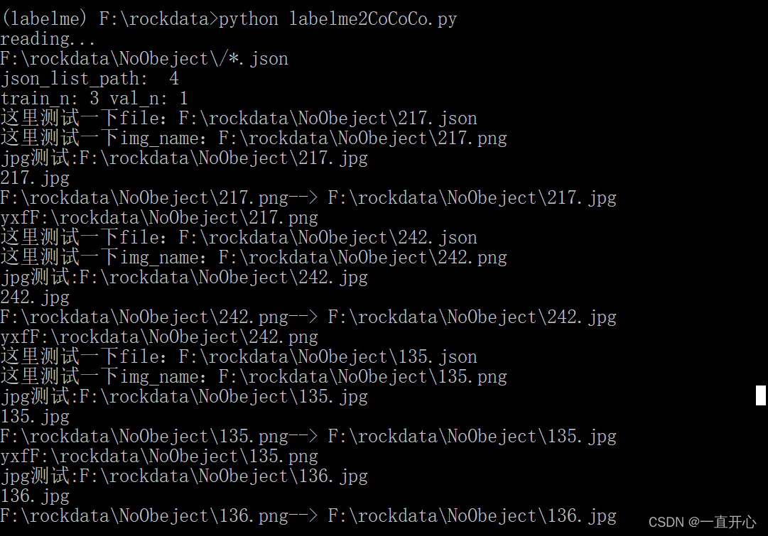Anaconda Prompt里 F:\rockdata 下的目录运行指令: